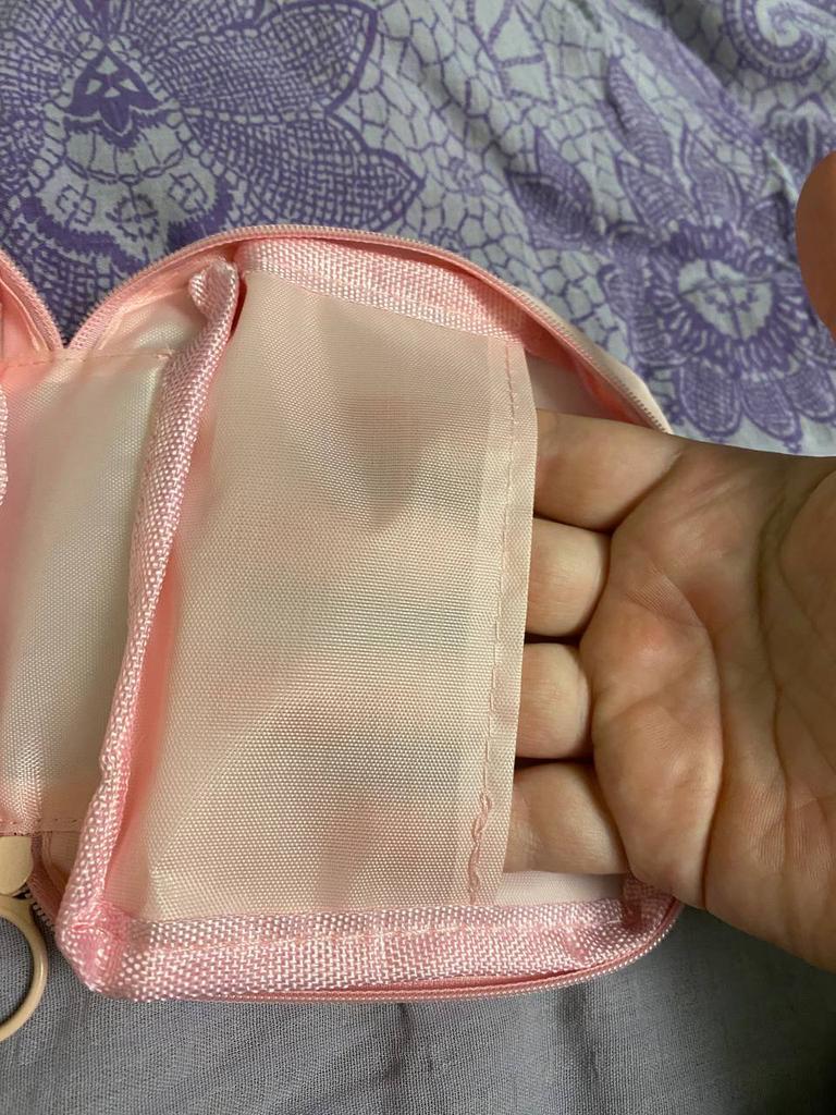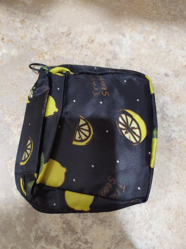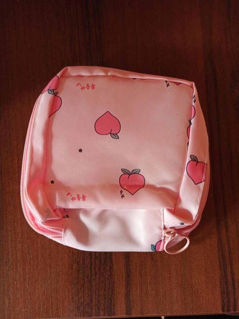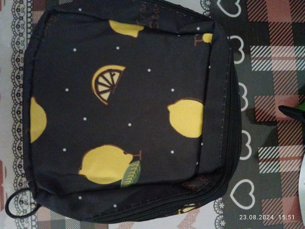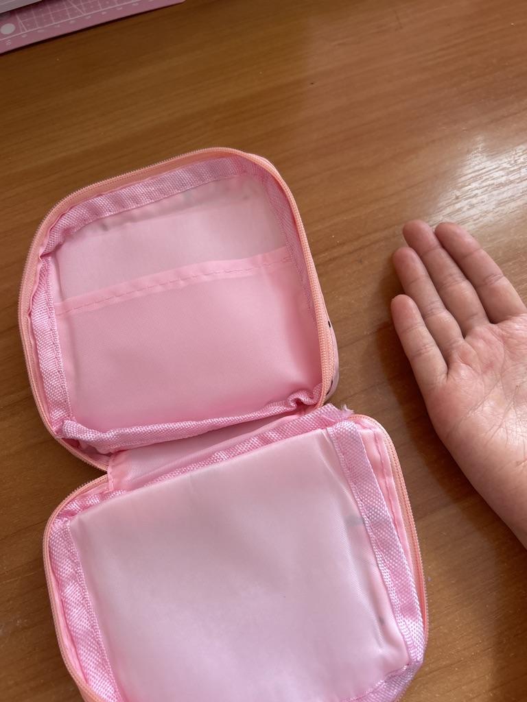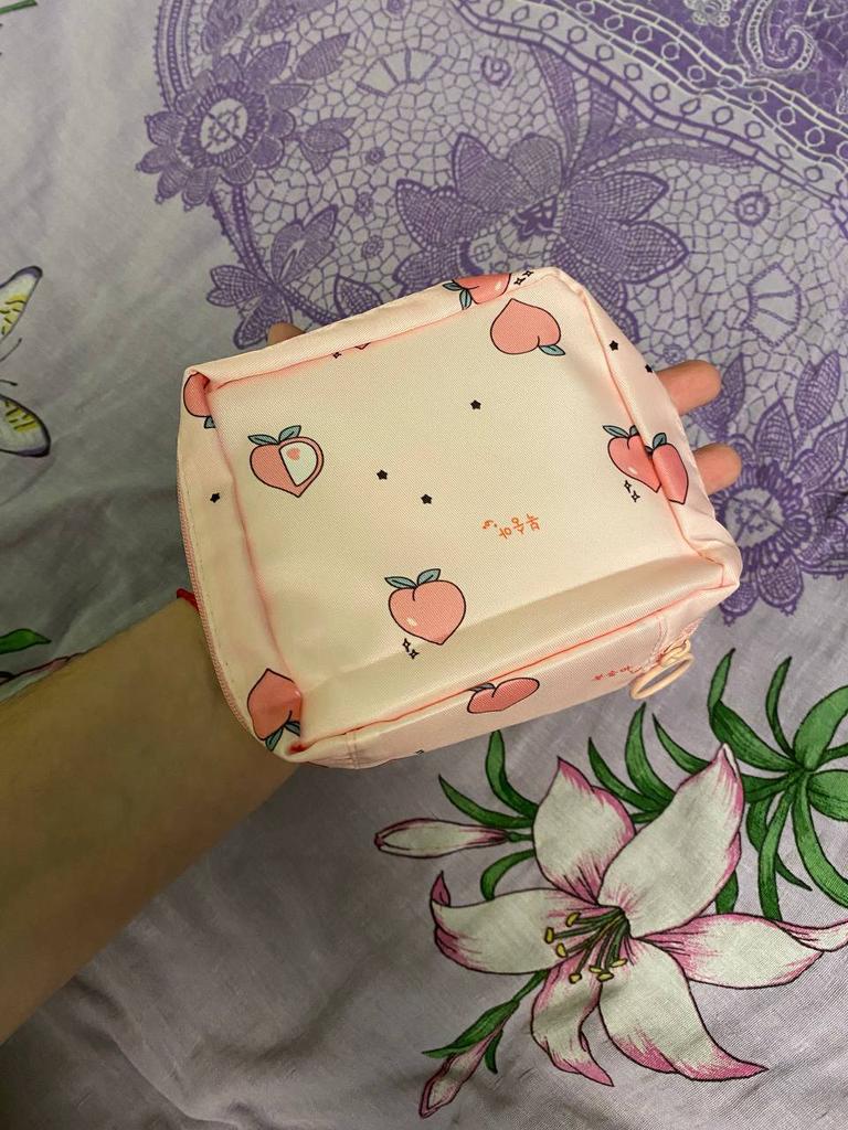 Ziemlich geräumige kleine Tasche) Mir gefällt es und die Binden ragen nicht einfach so in der Tasche herum. Hier passten welche in verschiedenen Größen hinein und alles ist hygienisch. Auf die Toilette zu gehen ist kein Problem mehr wie früher)