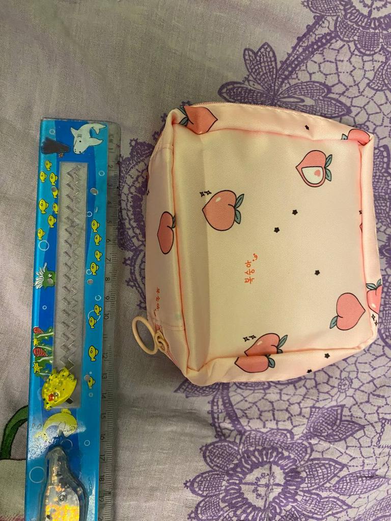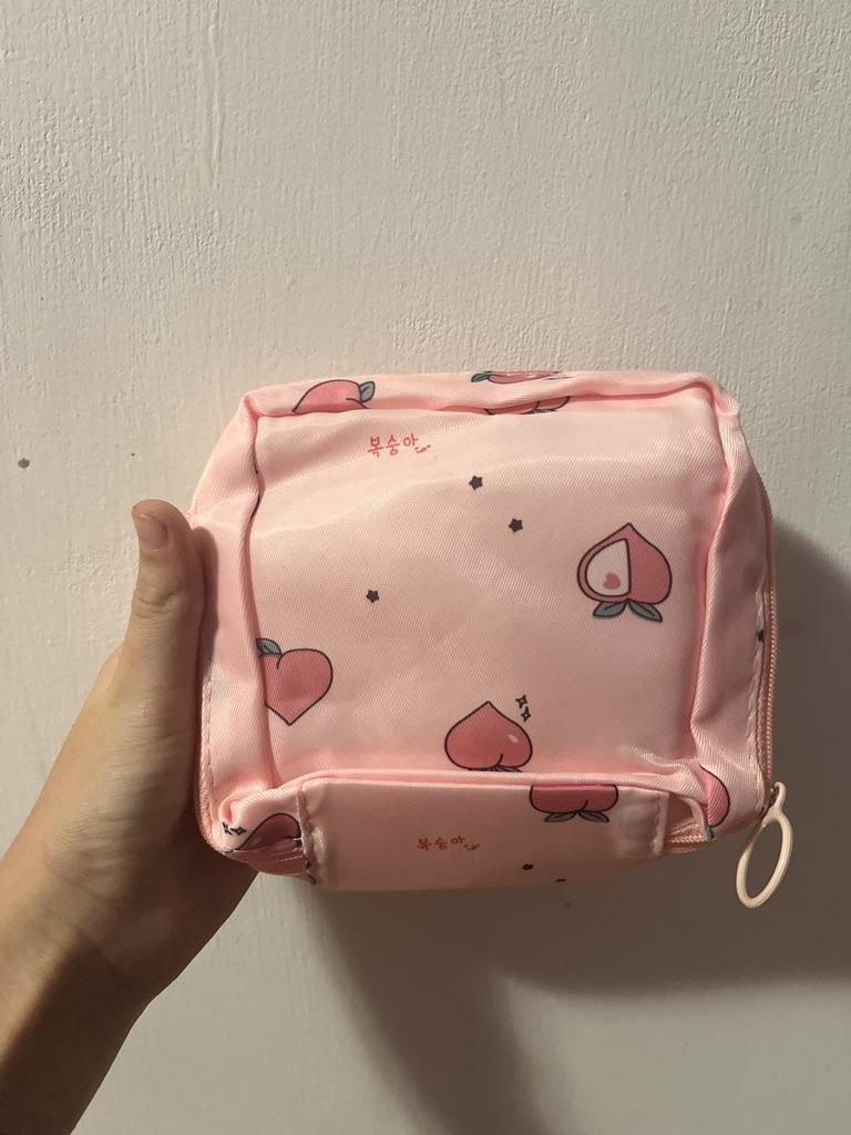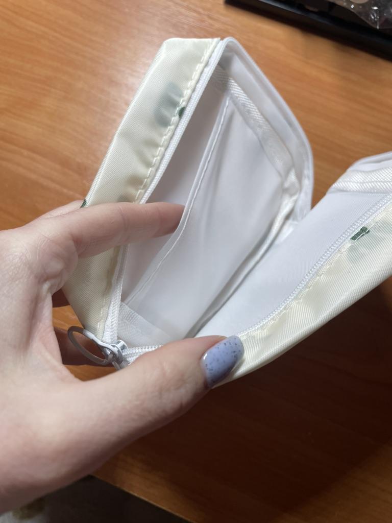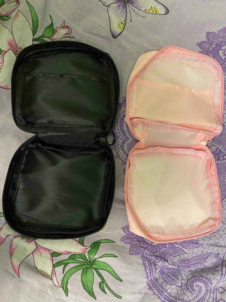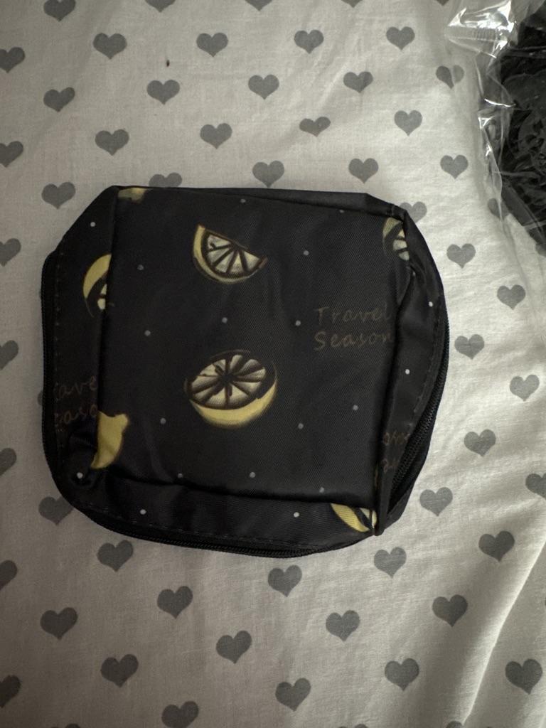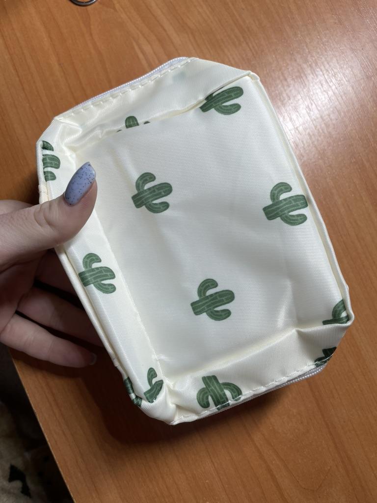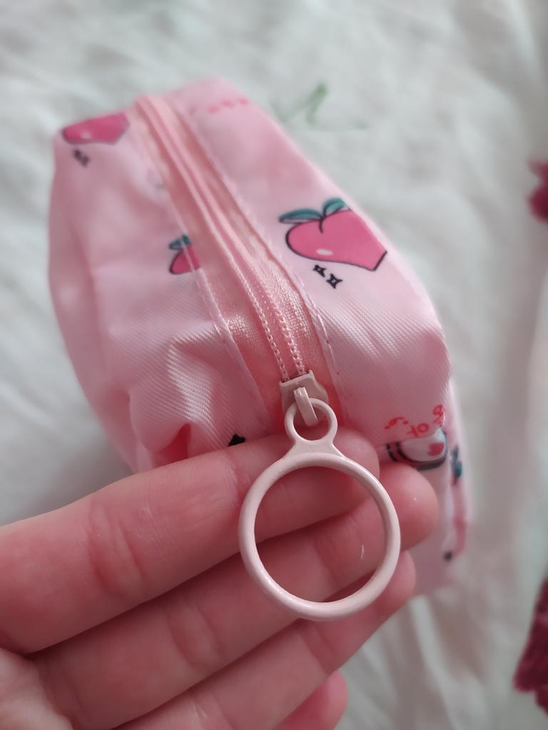 Ziemlich geräumige kleine Tasche) Mir gefällt es und die Binden ragen nicht einfach so in der Tasche herum. Hier passten welche in verschiedenen Größen hinein und alles ist hygienisch. Auf die Toilette zu gehen ist kein Problem mehr wie früher)
