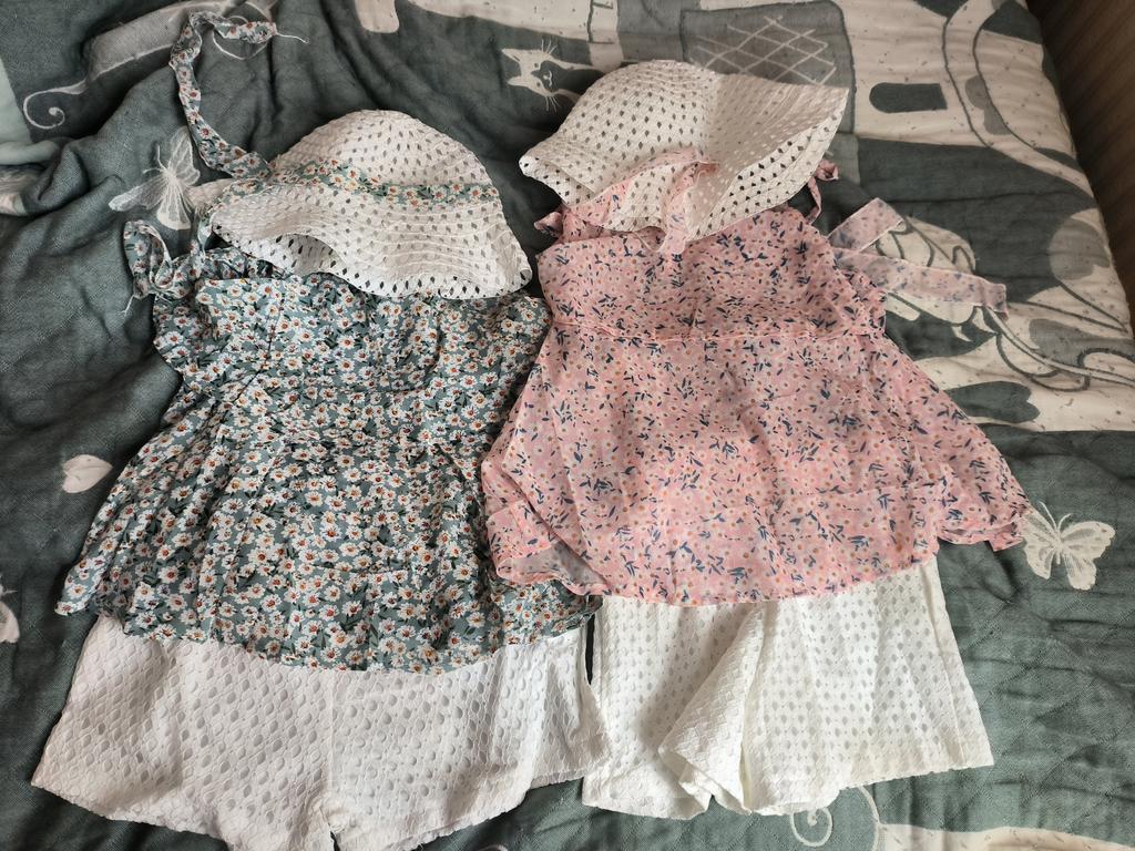 Neues zweiteiliges Set aus Chiffon mit Anzugrock und Hut für Mädchen
