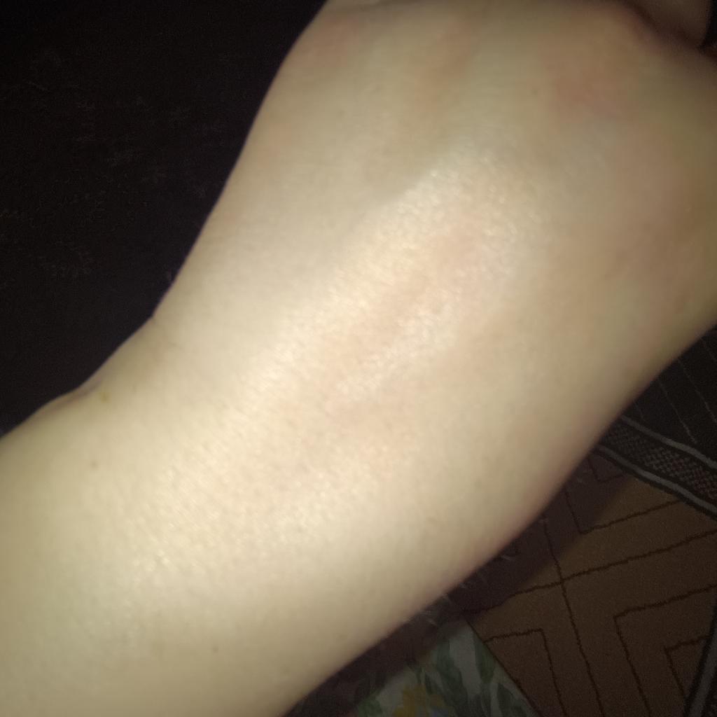 Sehr klein und eine ziemlich seltsame Creme-Textur. Lässt sich schlecht verteilen, weiße Krümel können auf der Haut zurückbleiben. Man muss sich sehr aufmerksam betrachten, um später nicht komisch auszusehen. Zieht aber schnell ein, wenn man es gut verteilt.