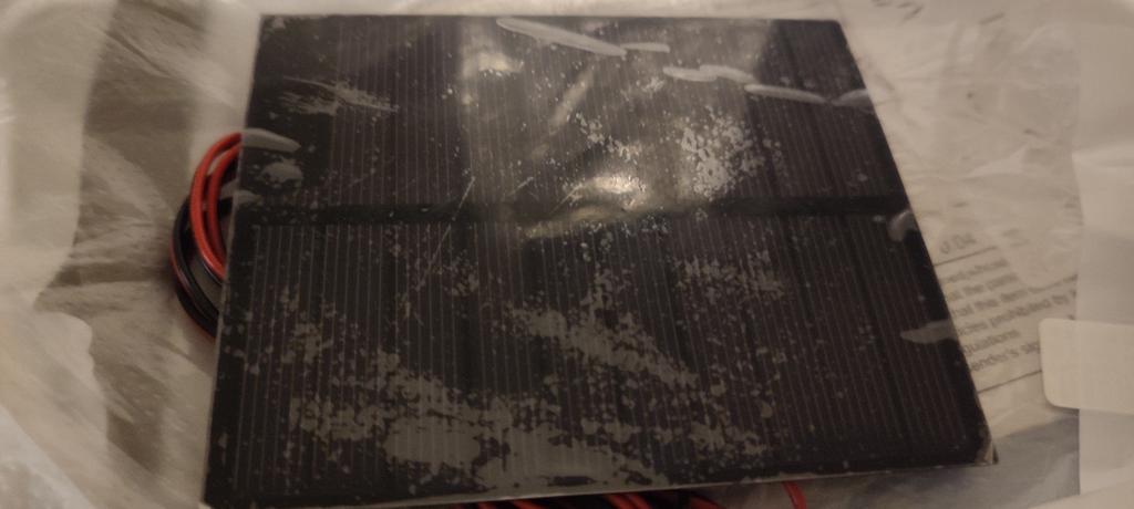 6 Volt bei strahlender Sonne. Ich habe ein Solarpanel aus 4 Teilen für einen Landbrunnen oder zum Aufladen einer Powerbank und LED-Lampen zusammengebaut