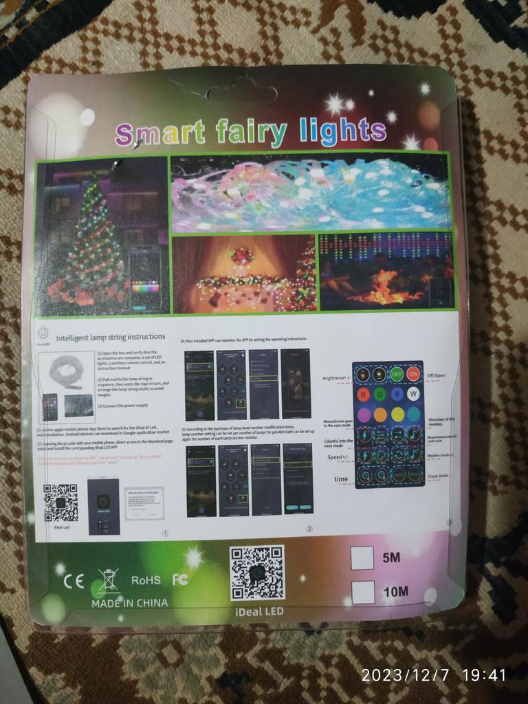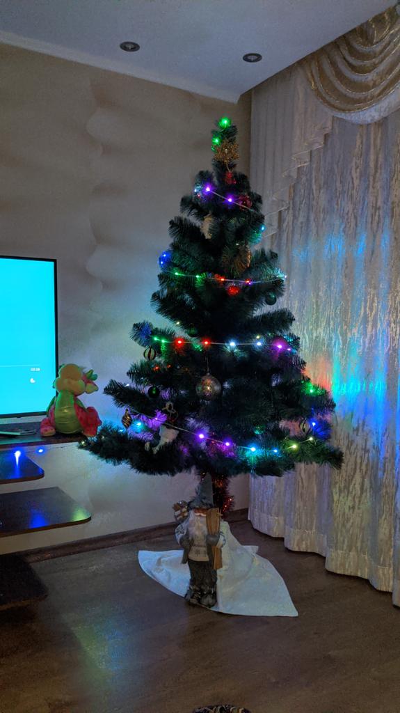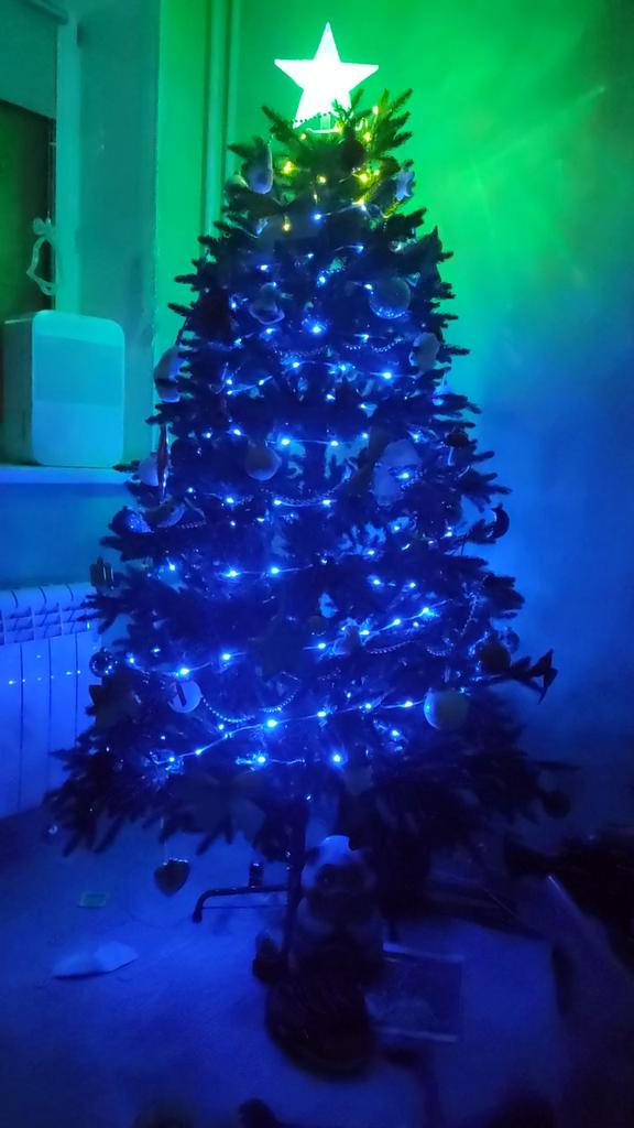 Wunderschöne Girlande. Hergestellt mit hoher Qualität. RGB, Mikrofon, jede Menge Einstellungen, Bluetooth-Verbindung. Um eine Verbindung über Bluetooth herzustellen, müssen Sie zunächst die Anwendung herunterladen und die Verbindung wird bereits hergestellt. Der Baum hat sich verwandelt, die Kinder sind glücklich.