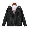 Frühling Herbst Vollarm PU Lederjacke Damen Umlegekragen Übergroße Reißverschlusstasche Nieten gesteppt Einfarbig Schwarz XS-XL