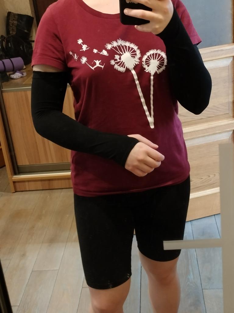 Ich habe lange nach einer guten Qualität und ohne Aufschriften gesucht. Sitzte perfekt auf einem dünnen Arm. Es lässt sich gut dehnen.