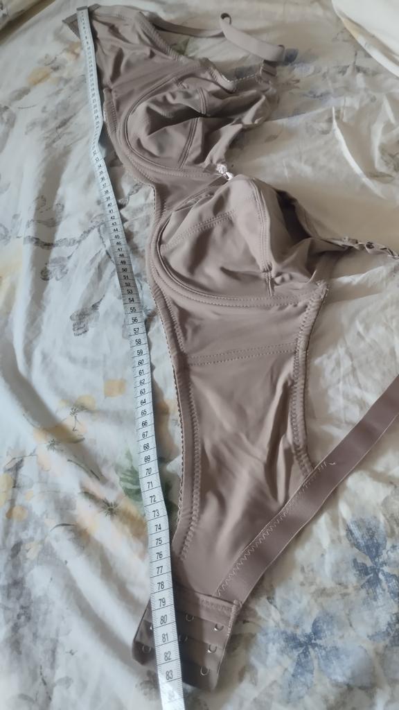 Es ist normal genäht, aber ich trage 85 E bei einer Brustgröße von 106 und das Körbchen fällt klein aus. Und sie machte ihre Brust flach. Mir gefiel die Form nicht.