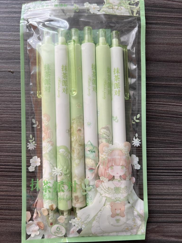 6-teiliges Matcha-Party-Gelschreiber-Set, Click-Typ, 0,5 mm Kugelschreiber, schwarze Tinte zum Schreiben, Büro, Schule
