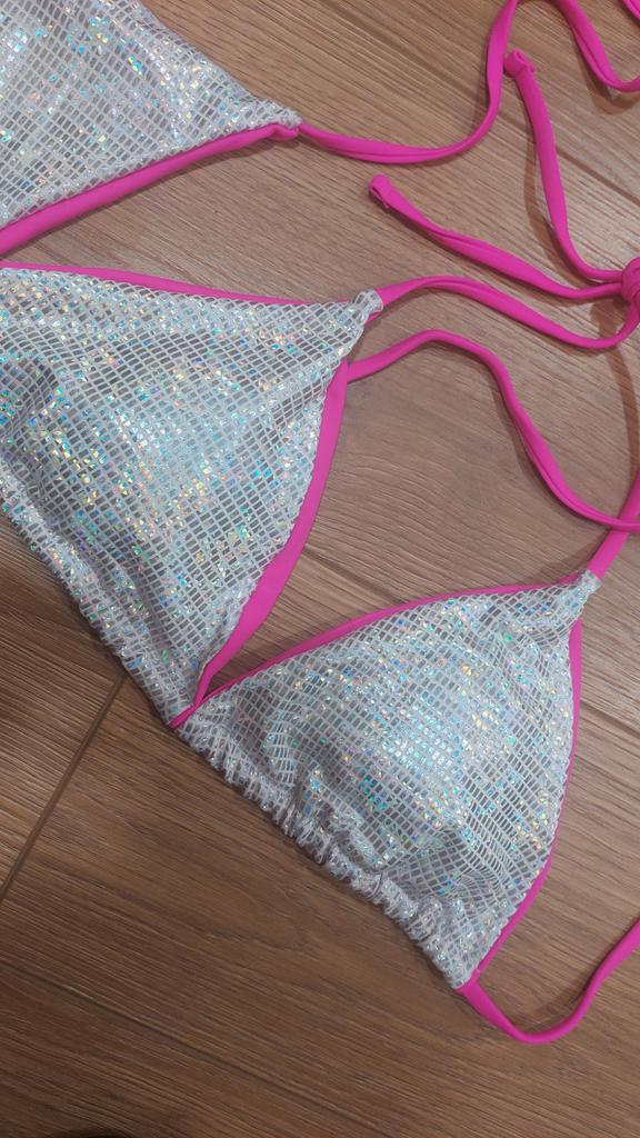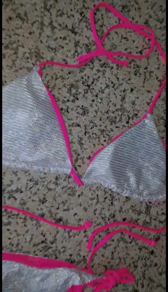 Damen-Badeanzug, sexy, glänzender Neckholder-Bikini, seitlich gebundener Tanga, brasilianische Strandmode, Badeanzüge