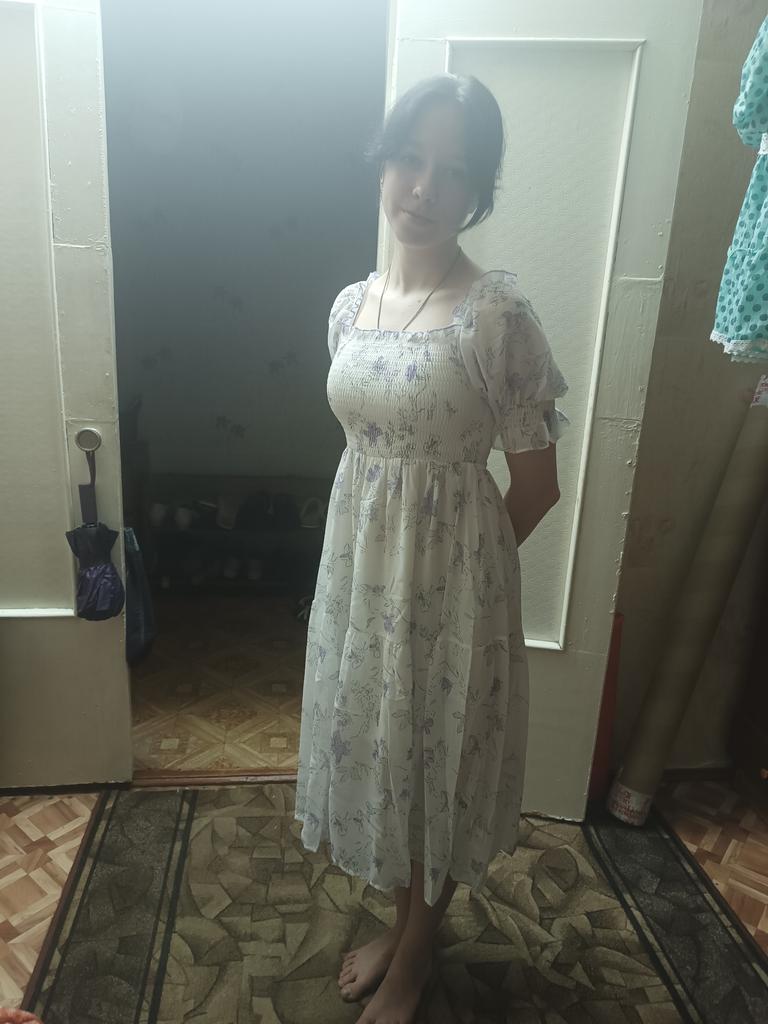 Das Kleid sieht aus wie auf dem Foto, die Größe hat gepasst. Der einzige Minuspunkt sind die abstehenden Fäden.