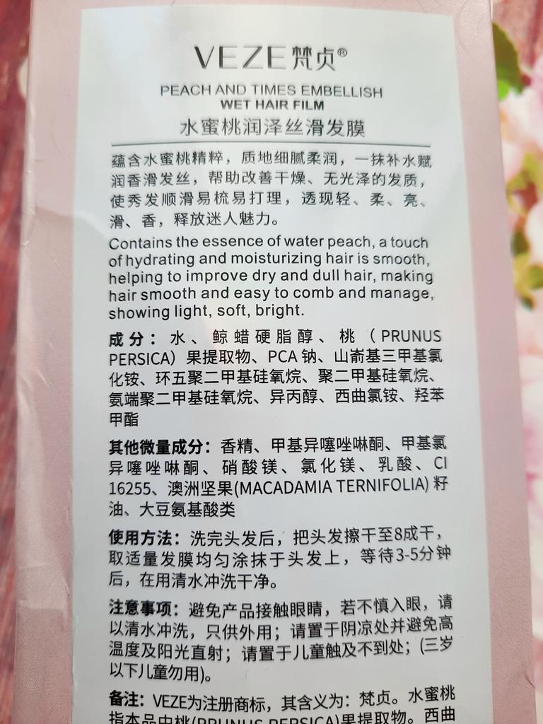 ☻️Ich habe die Masken erhalten und sofort alle drei Sorten bestellt, aber bisher habe ich nur die Pfirsichmaske ausprobiert. 🍑Der Geruch ist angenehm, die Konsistenz ist wie bei einer normalen Haarspülung, ich war erfreut, dass die Menge in der Portion mehr als ausreichend für mein langes Haar war! Ich habe mich nicht ganz an die Empfehlungen auf der Verpackung gehalten, vielleicht war das Ergebnis deshalb nicht so beeindruckend, es ist einfach eine gute Haarspülung. Das nächste Mal werde ich versuchen, alles nach Herstellerempfehlung zu machen und einen anderen Typ auszuprobieren.. Vielen Dank!🇨🇳