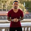 Muscleguys Einfaches Design Herren bequeme kurzarm T-Shirts Sommermode Allgleiches Slim Tees Fitness V-Ausschnitt Baumwolltops