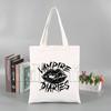 The Vampire Diaries Lustige Einkaufstasche Grafik Tote Harajuku Frauen Canvas Umhängetasche Weiblich Ulzzang Eco Großes Fassungsvermögen