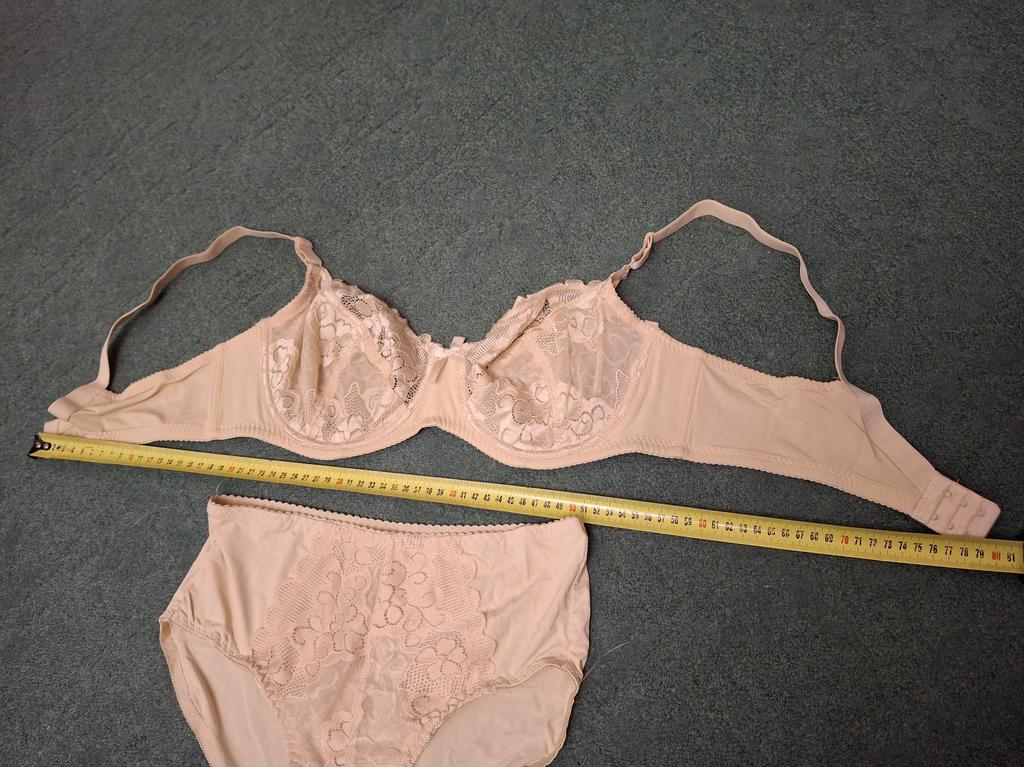 Für ein Brustvolumen von 126, Größe 4, etwas locker, musste ein kleineres Volumen unter der Brust genommen werden. Aber es kommt selten vor, dass das Körbchen nicht flach, sondern tief genug ist, wirklich für große Brüste. Das Set selbst ist von guter Qualität, sauber genäht, der Mangel ist mir noch nicht aufgefallen. Der BH ist leicht, liegt angenehm am Körper und wäre gut für den Sommer. Aber ich glaube nicht, dass es für lange Zeit ausreichen wird. Höschen mit tiefer Passform passen auf üppiges Gesäß und Hüften 125 - 135, vielleicht auch mehr. Das Größenraster stimmt überein. Wenn Sie also Ihre Größen richtig auswählen, haben Sie ein gutes Set zum Ändern.