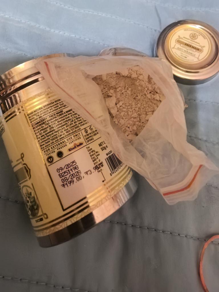 Das ist ein Pulver in einer Blechdose. Duftende Tonerde, und irgendwelche Zusätze, wie in der Beschreibung.. Mit Wasser gemischt, aufs Gesicht aufgetragen. Zieht die Haut zusammen, wie üblich, wenn man Tonerde aufträgt. Beim Abspülen fühlt sich der Peeling-Effekt angenehm an. Die Haut wird heller.. Der Verbrauch ist sparsam.