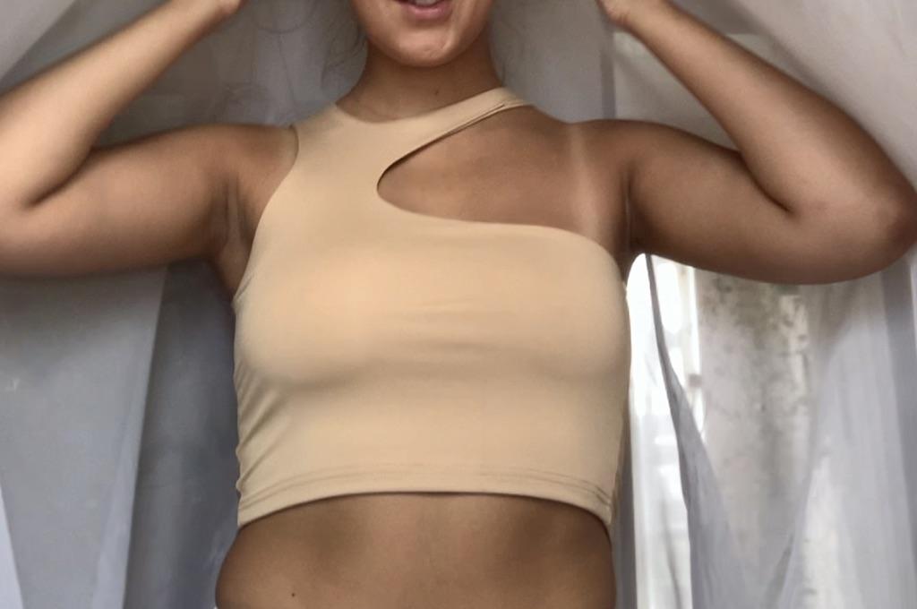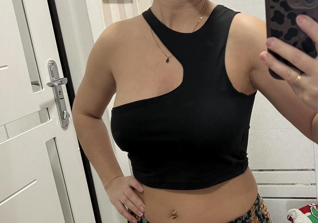 Der Stoff ist wie ein Badeanzug, aber alles ist in Ordnung... Meine kleinen Schultern sehen in diesem Oberteil groß aus😅