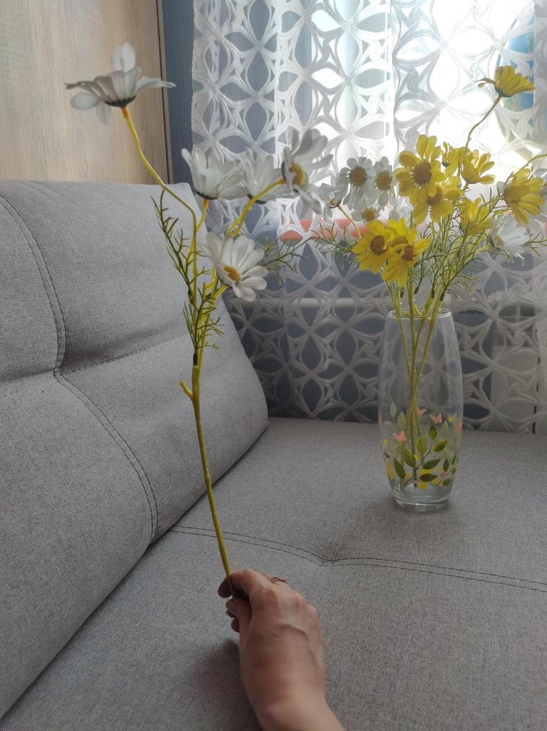 Künstliche Gänseblümchen 🌼💛 Der Verkäufer hat fünf Farboptionen, ich habe Weiß gewählt. Klassisch ☺️. Die Länge des Zweiges beträgt laut Verkäufer ca. 53 cm. Der Zweig ist mit 5 Knospen verziert . Der Zweig selbst 🌿 besteht aus Kunststoff, die Blütenblätter 🌼 sind aus Stoff. Der Zweig ist süß, er hat mir gefallen. Für ein Foto bestellt. Ich füge genügend Fotos + Videos hinzu, um Ihnen die Entscheidung zu erleichtern 📸🎥 Wenn die Informationen nützlich waren, markieren Sie sie als Favorit ❤️😘 Ich habe die Ware innerhalb von 30 Tagen in einem Kombipaket erhalten 🚚 Die Strecke wurde komplett verfolgt. Die Ankunft am Lieferort wurde per SMS benachrichtigt 📲 Verpackung: normales Postpaket. Der Zweig wurde sorgfältig in ein Stück geschäumtes Polyethylen eingewickelt. Alles kam unversehrt an. Ware ohne Mängel und Mängel, ohne Fremdgeruch. Viel Spaß beim Einkaufen und schnelle Lieferungen an alle 🛒☺️🚀🌼