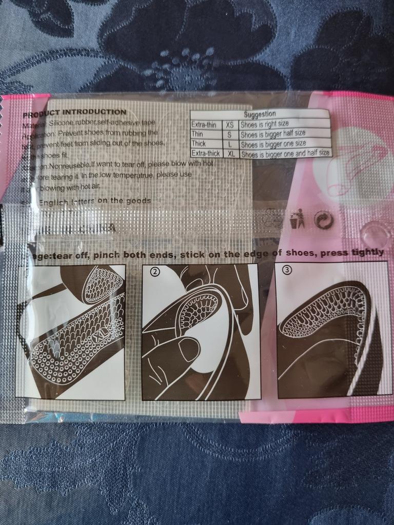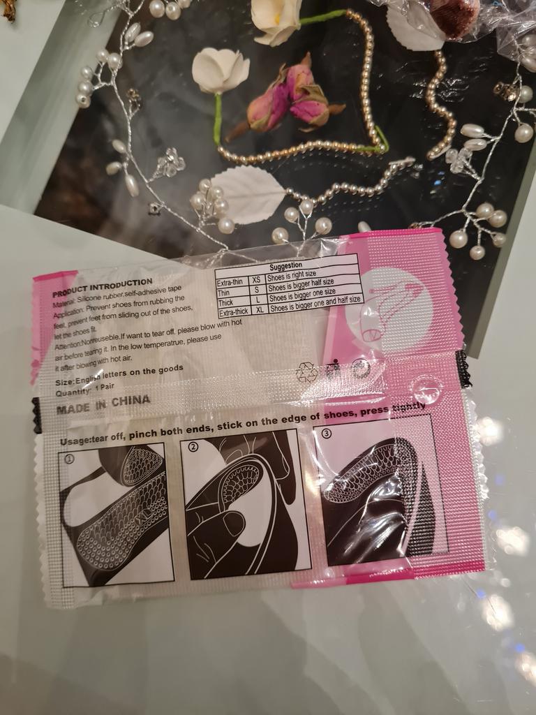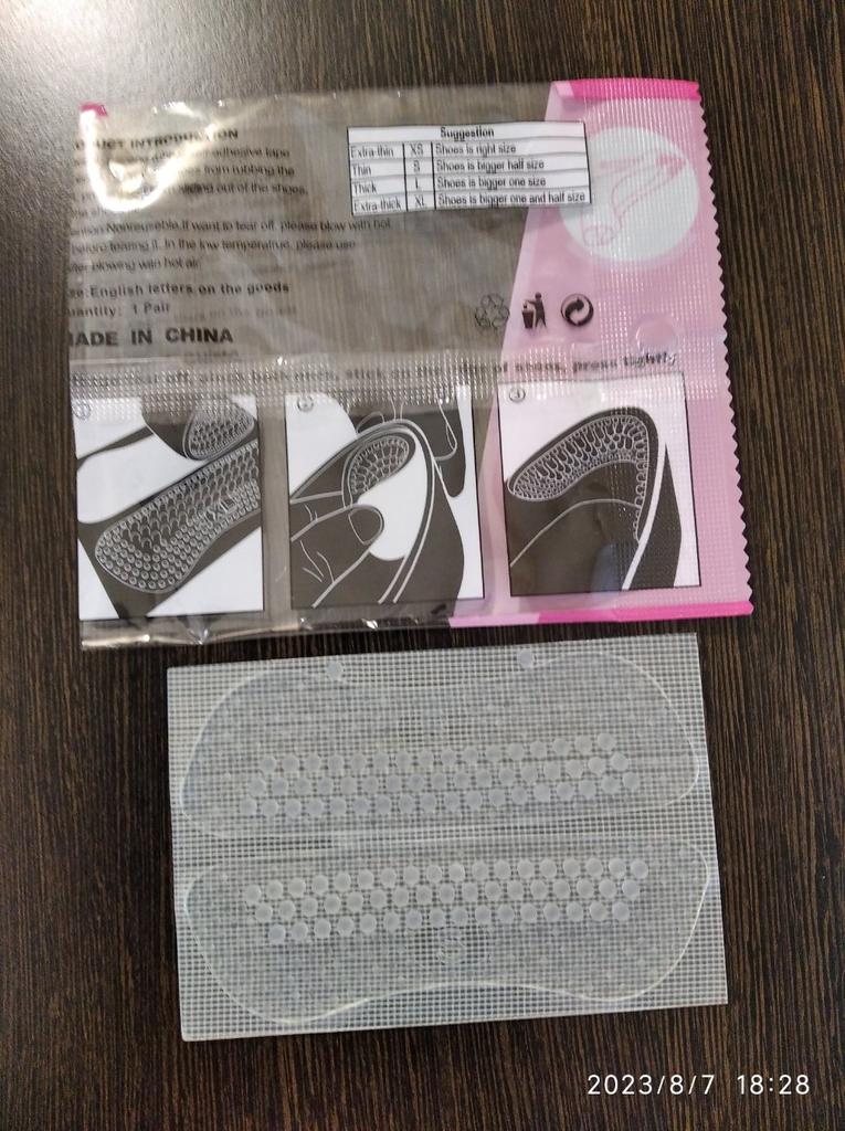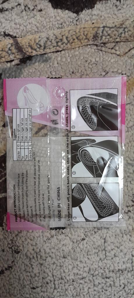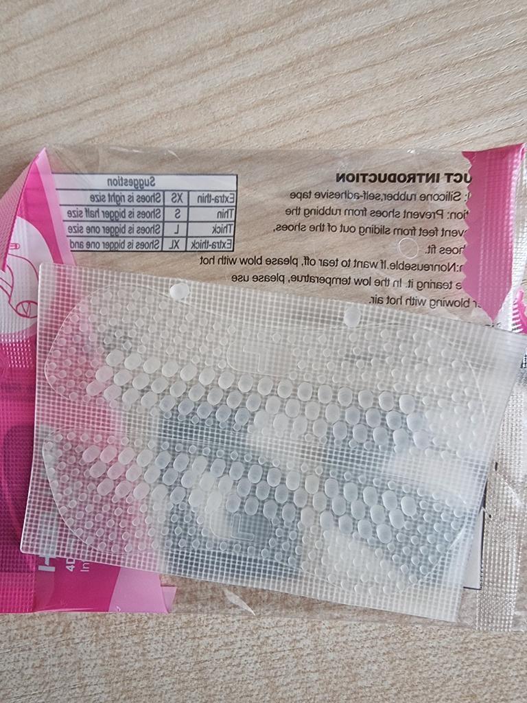 Schuhaufkleber aus Silikon. Sie haften an der Rückseite von Schuhen und schützen diese vor Scheuerstellen. Ich habe es noch nicht ausprobiert. Ich habe es mit einem Rabatt auf 3 Artikel gekauft.