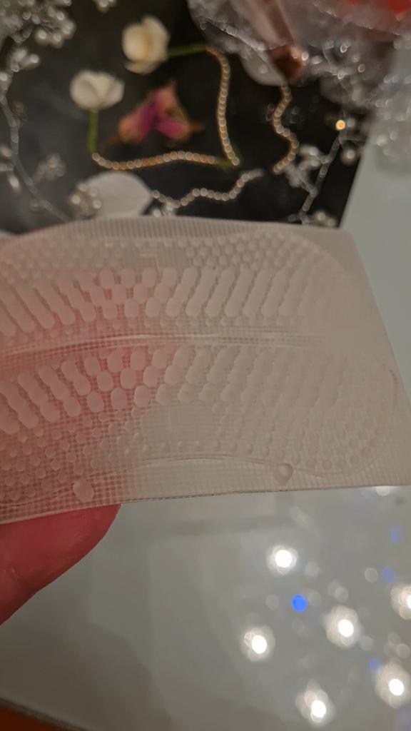 Sehr bequemes Fersenpolster aus Silikon, das die Bildung von Hornhaut verhindert und das Volumen der Schuhe reduziert, wenn die Schuhe zu groß für Sie sind. Das Paar ist auf eine Klebeschicht geklebt und haftet gut an den Schuhen. Die Zotten sind unterschiedlich groß und sehr, sehr weich!! Ich GLAUBE, dass sie Ihnen wirklich helfen werden, ohne Hornhaut zu leben!!!! Dieser Aufkleber kann übrigens ausgeschnitten und als dünner Streifen auf den Riemen einer Sandale geklebt werden (für zwei oder drei Paar).