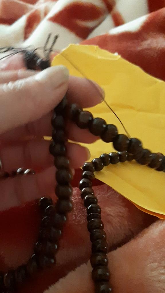 Sehr kleine Perlen, etwa 30 cm lang, sie sitzen nicht sehr fest, ich dachte, es wären 101 Perlen, das ist meine persönliche Meinung