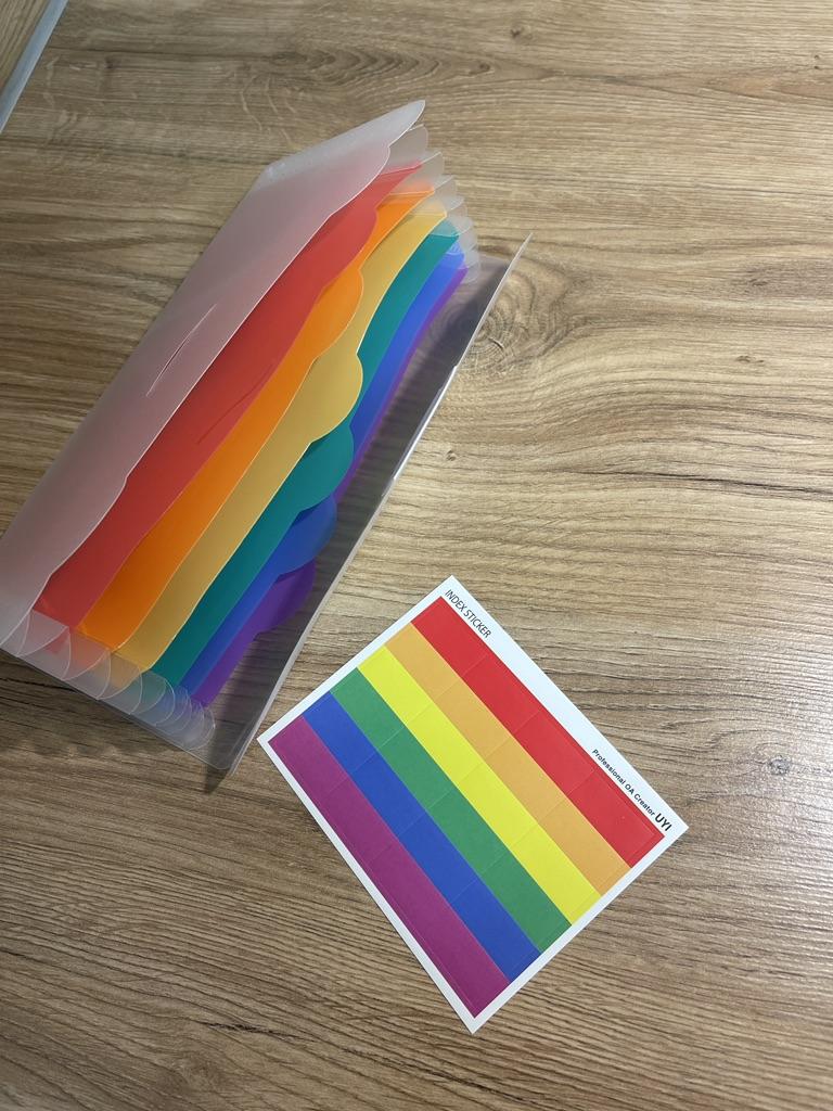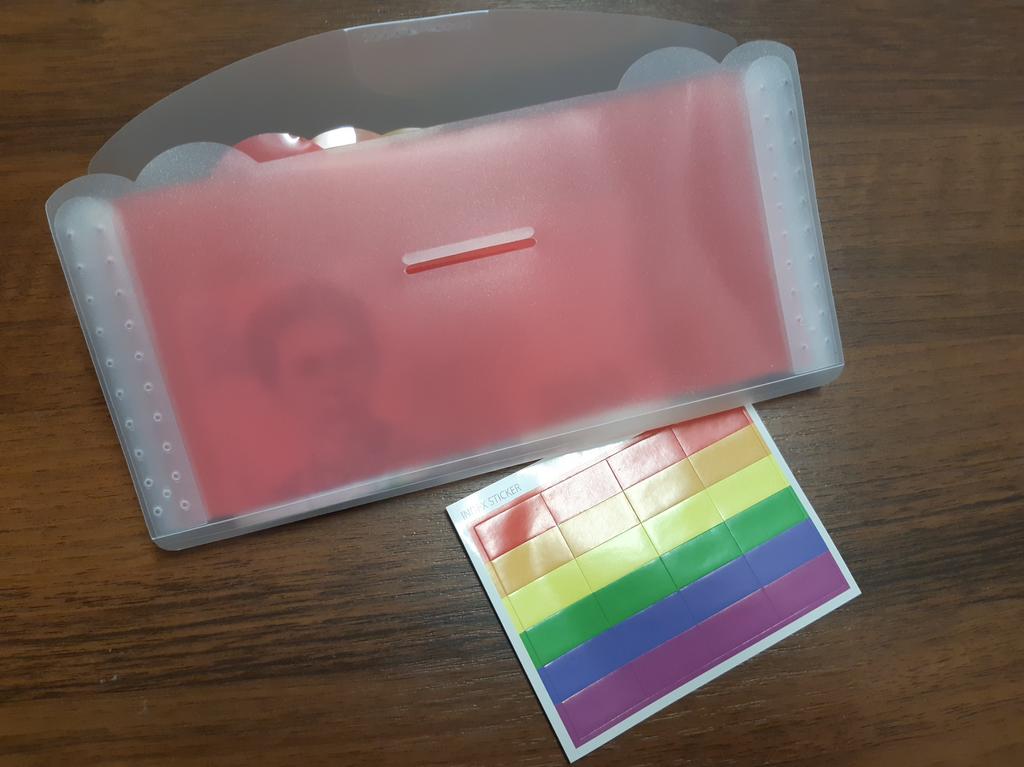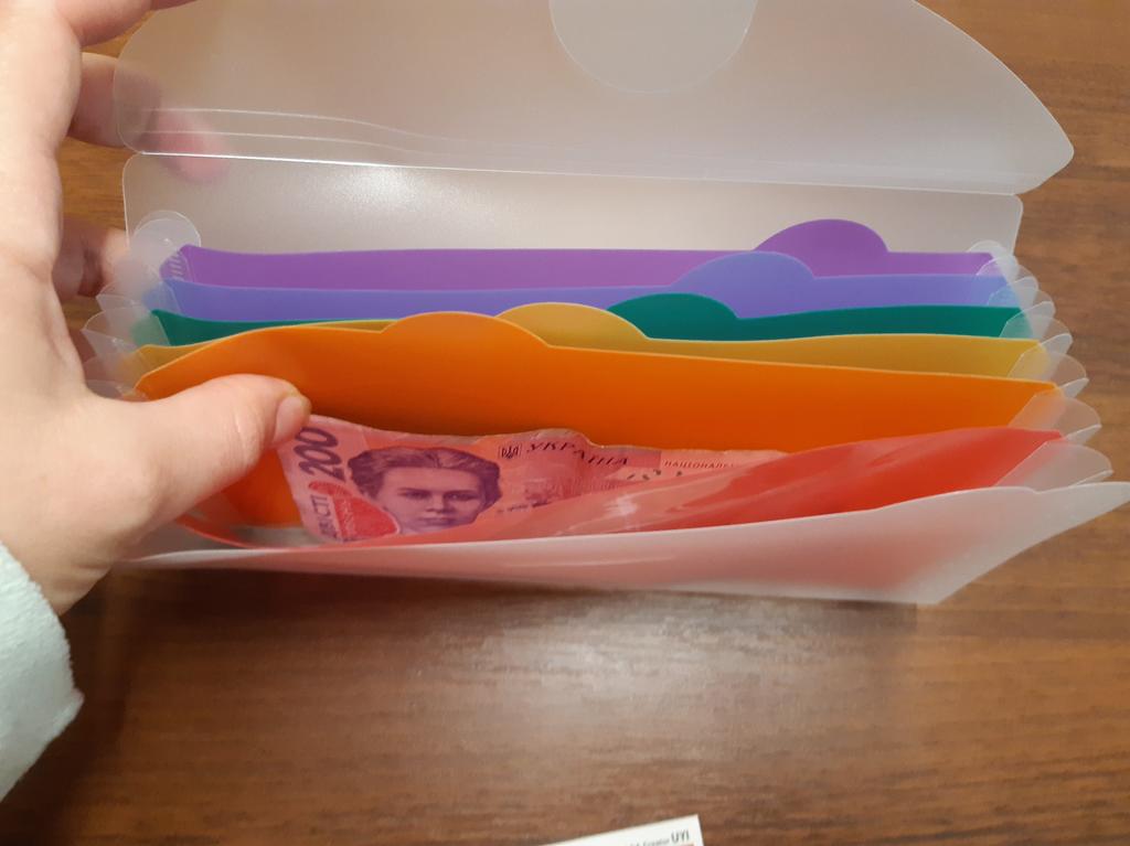 Der Ordner ist praktisch. Es gibt Aufkleber, die Sie unterschreiben und aufkleben können. Eine großartige Option für die Budgetaufteilung))): Ruhe, Essen, Nebenkosten usw.
