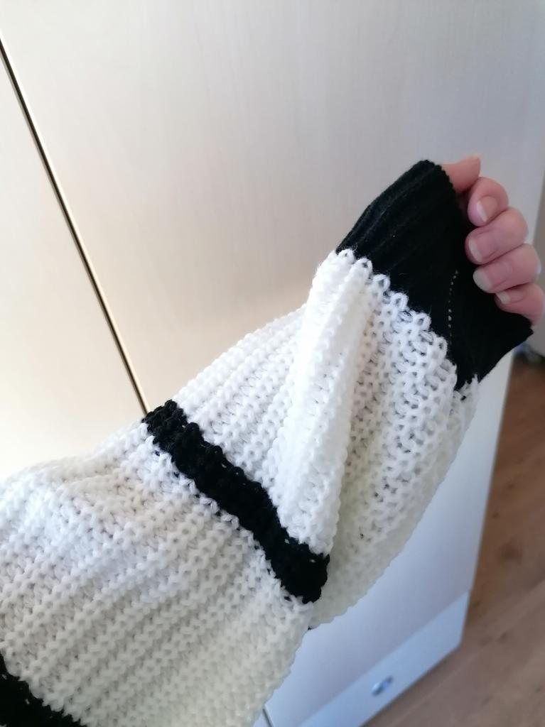 Der Pullover ist nicht schlecht, groß gestrickt, aber man hat das Gefühl, dass er gedehnt ist