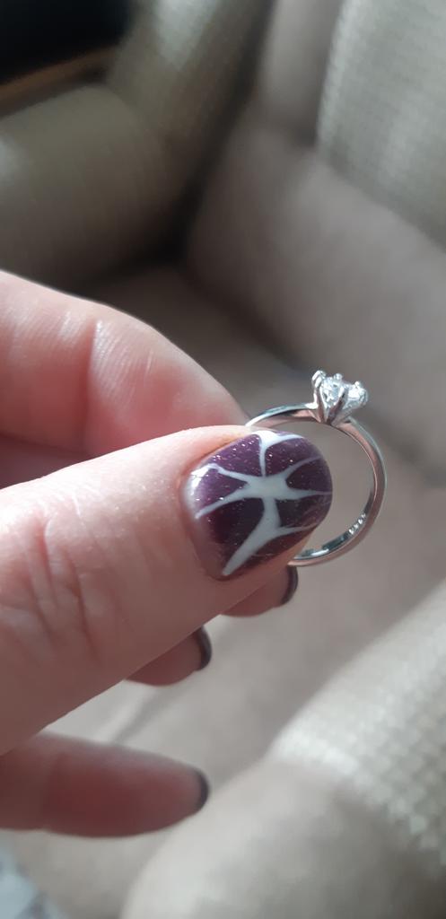 Ein Ring mit einem transparenten Stein, obwohl der Stein auf dem Foto trüb ist. Also im Prinzip ist es normal.