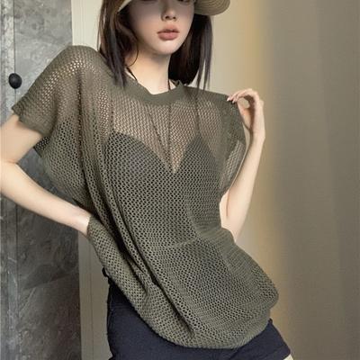 Temperament Perspektive Hohl Gestrickte Hemd Sommer Würzig Mädchen Lose Mode Kurzarm Top Weibliche Chic