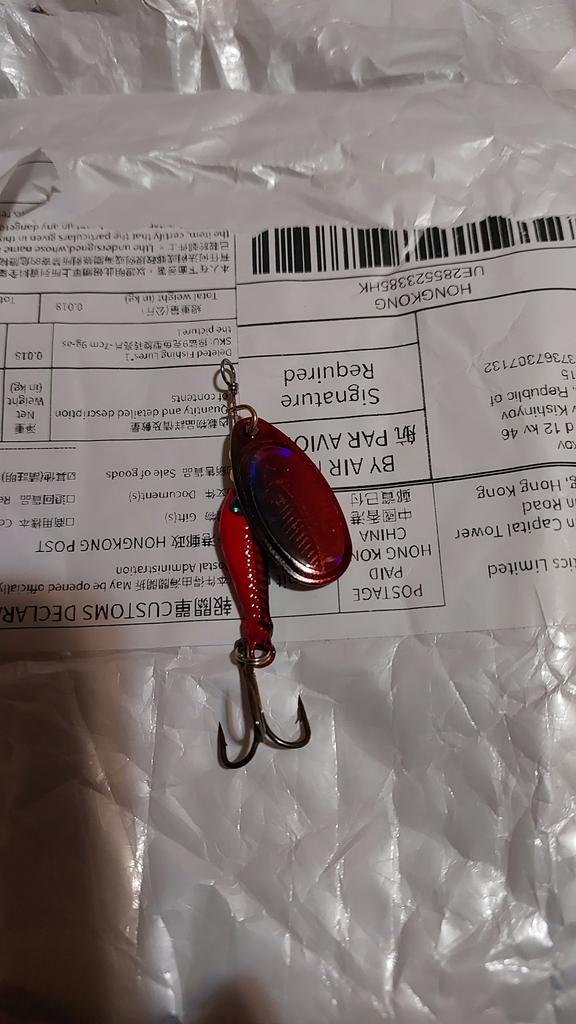 Der Spinner funktioniert, der Hecht ist gefangen. Ich habe bereits ein zweites bestellt. Doch beim ersten Angelausflug löste sich der Aufkleber vom Spinner.