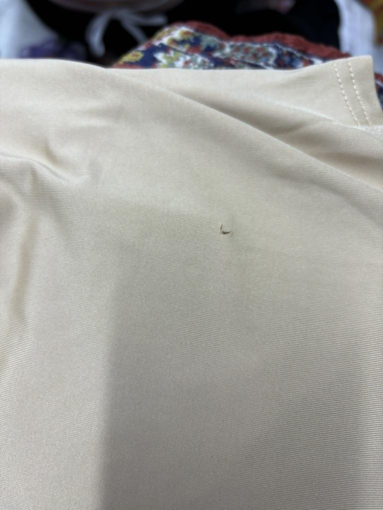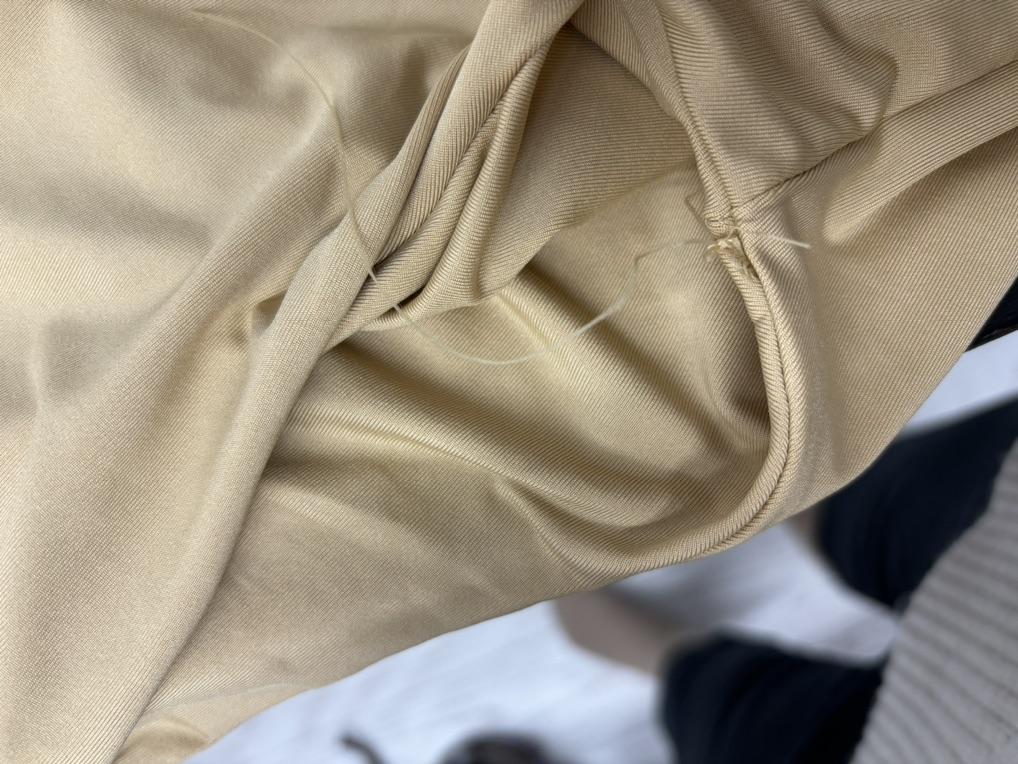 Löcher im Rücken und überall hervorstehende Fäden