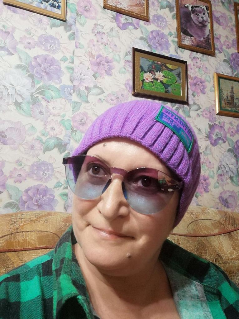 Der Hut hat eine wunderschöne Smaragdfarbe. Dies ist der zweite. Etwas größer als Lila.