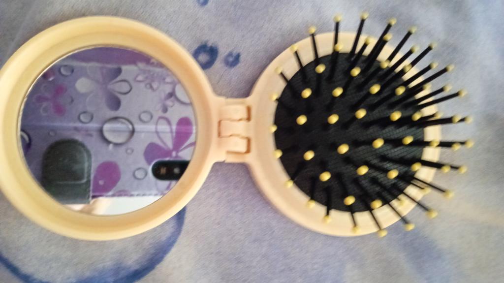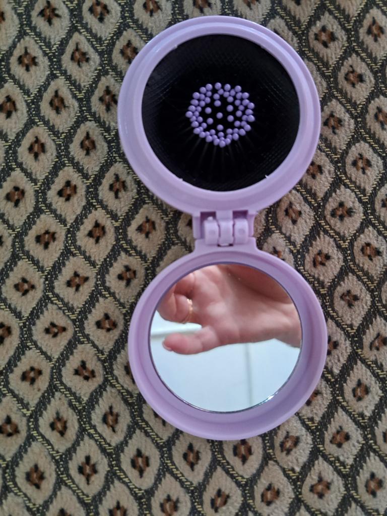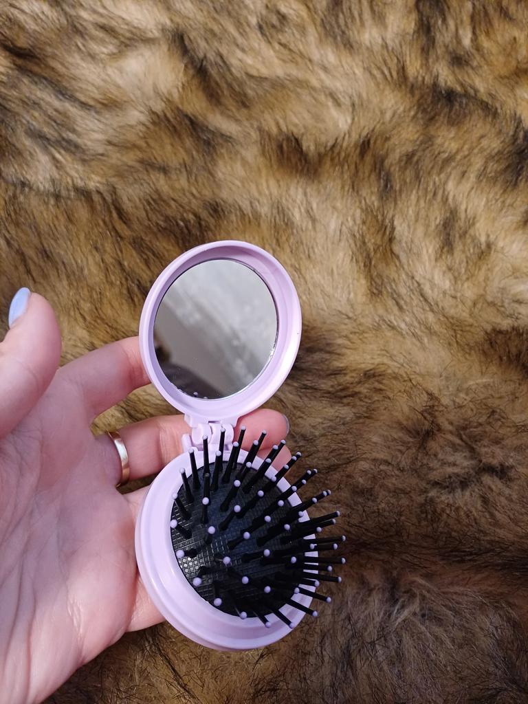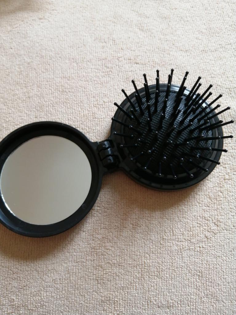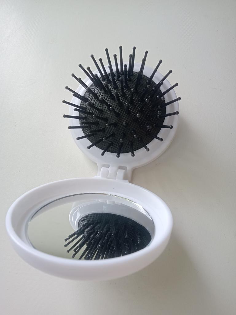 Ein Miniaturkamm mit Spiegel, obwohl ich erwartet hatte, dass er etwas größer ist, aber so ist es. Der Kamm ist beim Kämmen ziemlich rau (nicht weich), funktioniert aber einwandfrei. Ein Muss in Ihrer Handtasche.