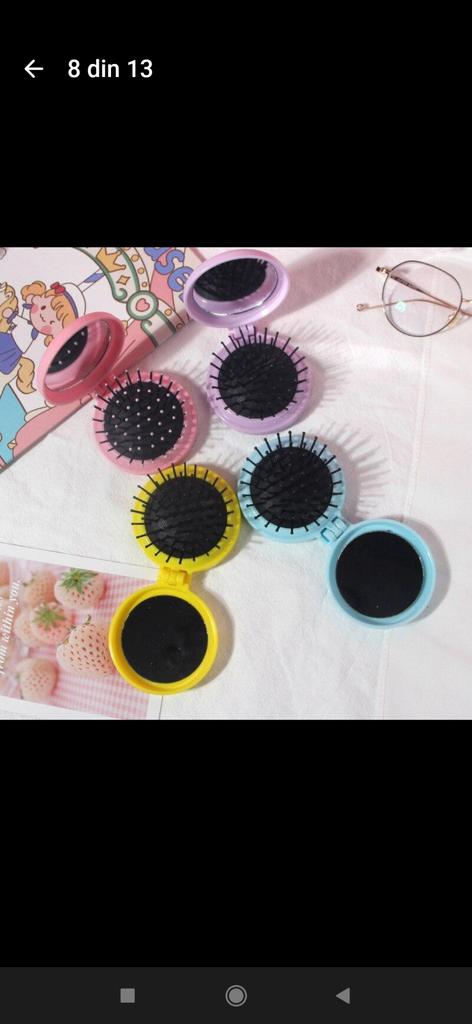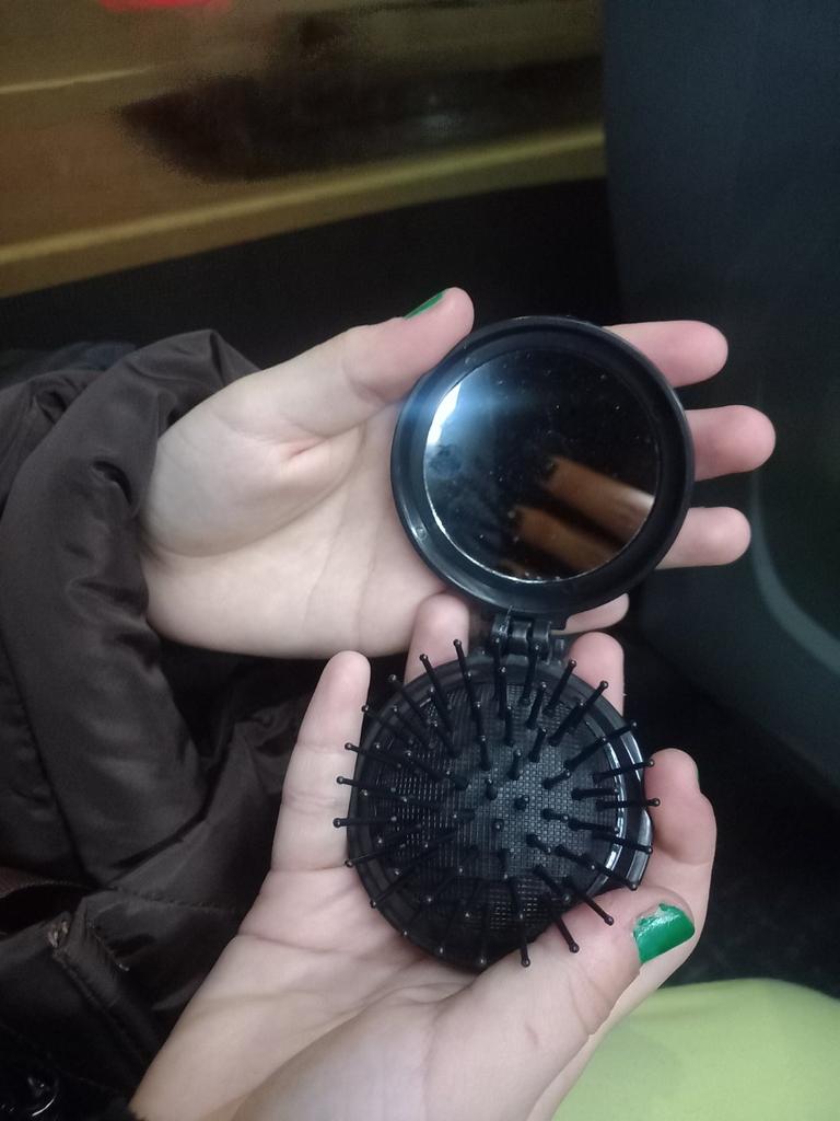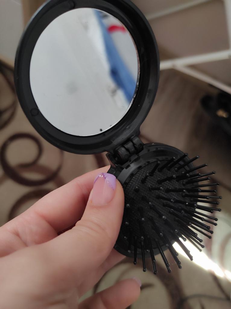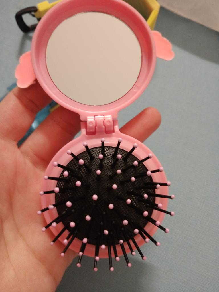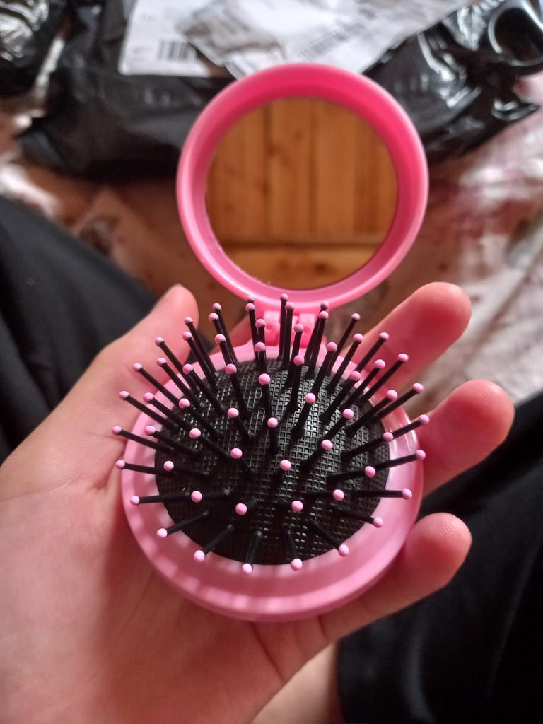 Ein Miniaturkamm mit Spiegel, obwohl ich erwartet hatte, dass er etwas größer ist, aber so ist es. Der Kamm ist beim Kämmen ziemlich rau (nicht weich), funktioniert aber einwandfrei. Ein Muss in Ihrer Handtasche.