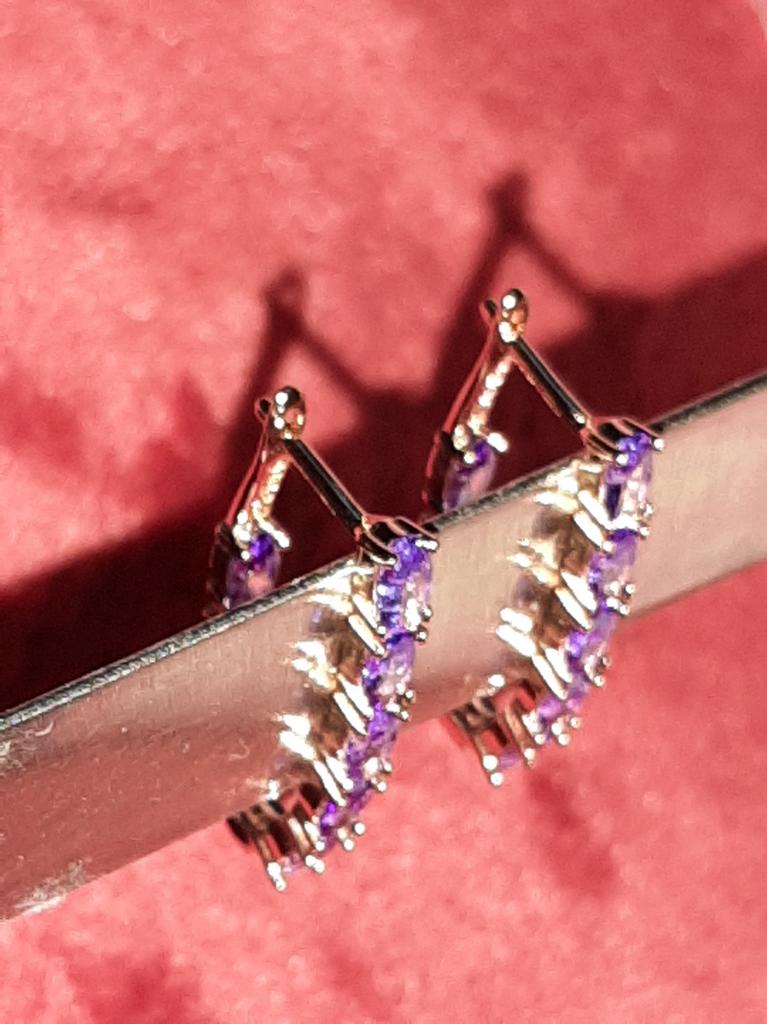 Luxus Vollklaue Oval Lila Zirkon Metall Ohrringe Rose Gold Farbe Frauen Party Hochzeit Schmuck