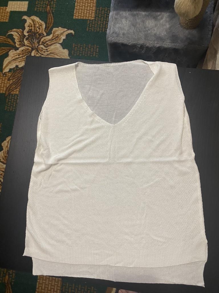 Ein interessantes Strick-T-Shirt, die Farbe ist wie auf dem Foto. Die Strickware liegt angenehm am Körper, leicht transparent. Die Qualität ist gut. Die Lieferung erfolgt schnell. Ich empfehle!