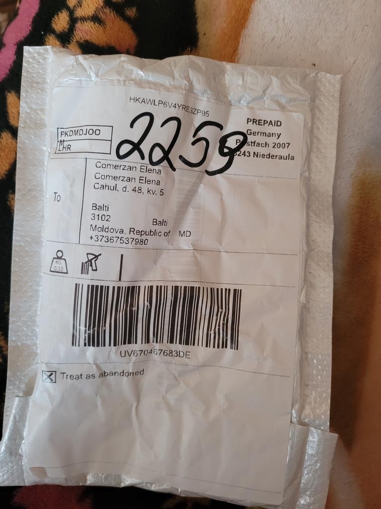 Ich habe die Bestellung erhalten, alles ist in Ordnung, danke.