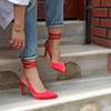 Damenmode Fliederfarbe Satin Kordelzug Stöckelschuhe