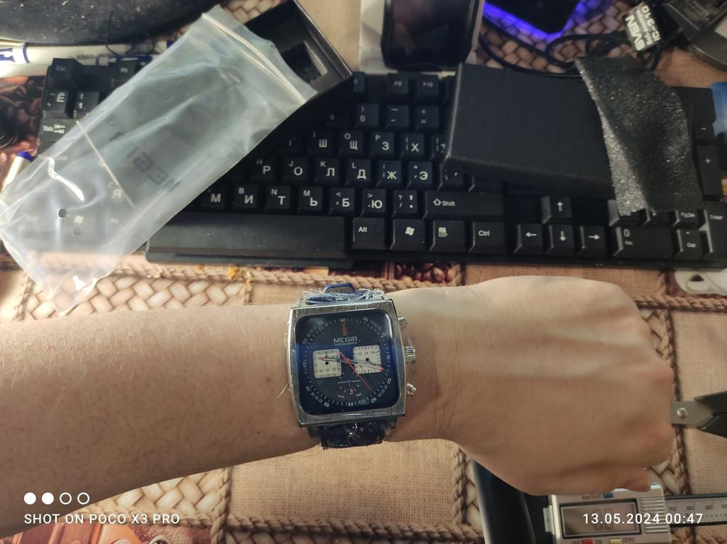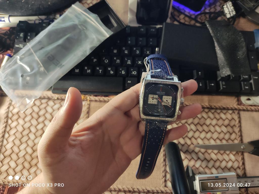 Megir Quadratisches Zifferblatt, Chronograph, Quarzuhren für Herren, modisches blaues Lederarmband, lässige Sport-Armbanduhr mit Datum 24 Stunden 2182