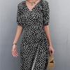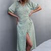 YYFS Damenmode Sommer Frühling Blumenmuster Druck Kurzarm V-Ausschnitt Hohe Taille Freizeitkleider
