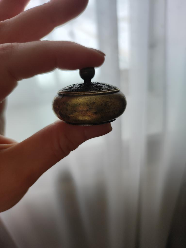 Sehr klein, auf dem Foto wirkte es größer) Kam mit zerknittertem Deckel, verpackt in einer einfachen Tüte(