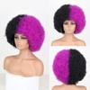 XINRAN Afro-Perücke für Damen, kurz, verworren, lockig, flauschig, Kunstfaser, kurz, halb schwarz, halb weiß, für den Alltag