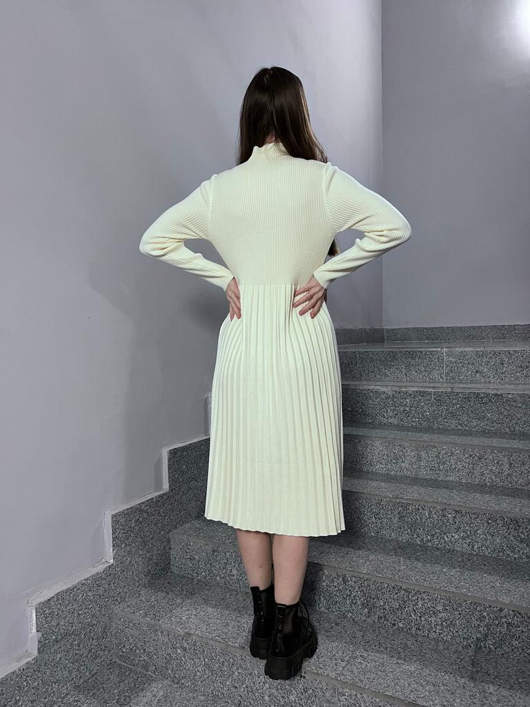 Frauen Herbst Winter High Neck Einfarbig Langarm Hohe Taille Verdicken Plissee Gestrickte Pullover Kleid
