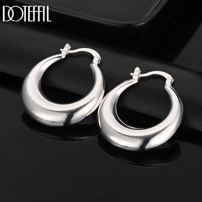 925 Sterling Silber Runde glatte U-förmige große Ring Ohrringe Modeschmuck