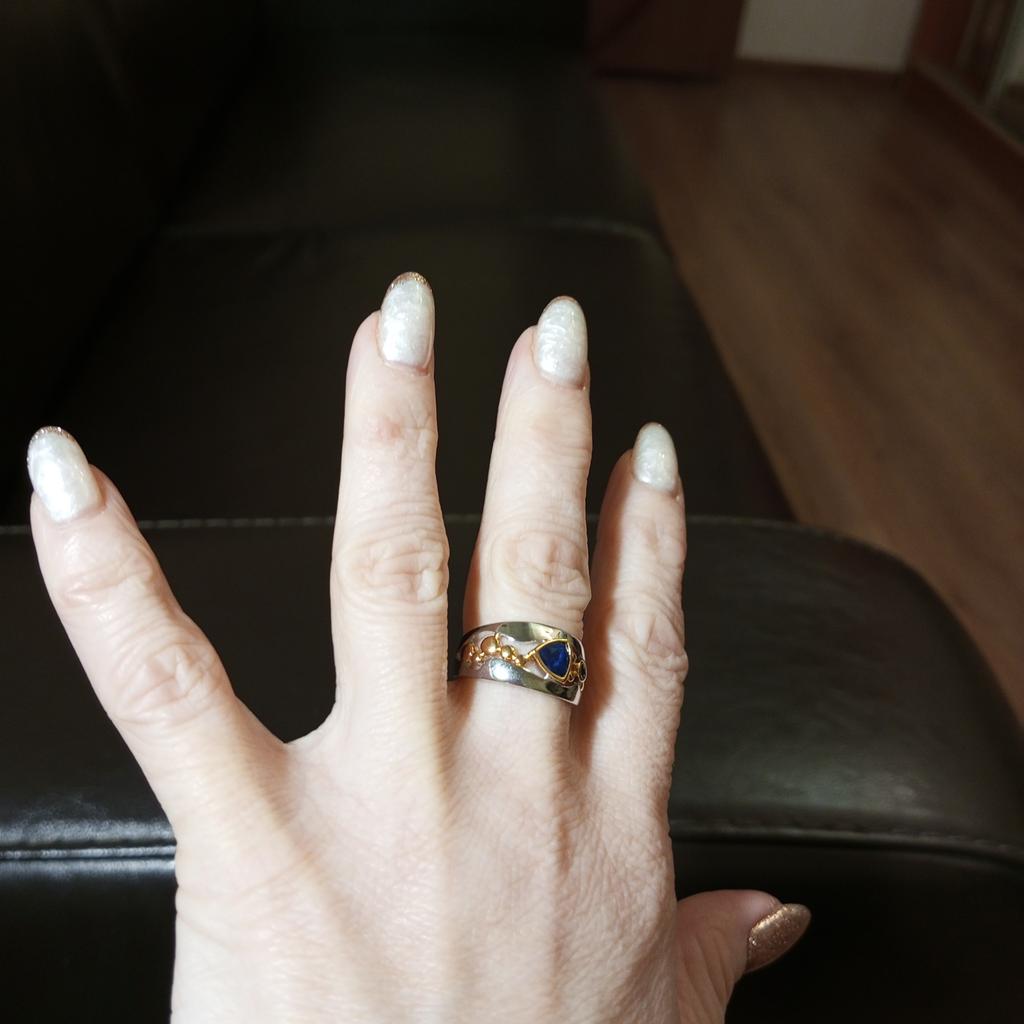 Ein hübscher Ring. Leider habe ich bei der Größe einen Fehler gemacht. Es war notwendig, nicht 7 (nur für den kleinen Finger), sondern 10 (es wäre für den Mittelfinger) zu nehmen. Vielleicht bestelle ich später ein größeres