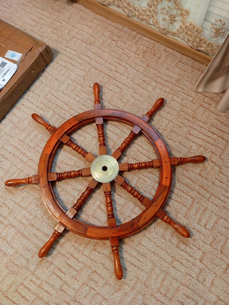 Verwandeln Sie Ihren Raum in ein maritimes Paradies mit diesem atemberaubenden 91,44 cm (36 Zoll) Großes Schiffssteuerrad, fachmännisch aus hochwertigem Teakholz gefertigt und mit glänzenden Messingakzenten verziert. Perfekt für nautische Enthusiasten, Piraten-Dekorateure oder alle, die ein auffälliges Statement-Stück suchen. Dieses übergroße Lenkrad kombiniert robusten Charme mit zeitloser Eleganz.. Egal, ob Sie ein Wohnzimmer im Küstenstil, eine Bar im Piratenstil oder das Interieur eines Yachtclubs gestalten, dieses Rad verleiht jeder Umgebung einen Hauch von Abenteuer und Authentizität.