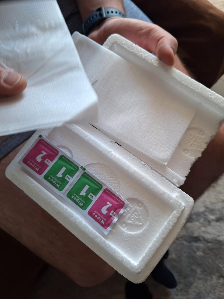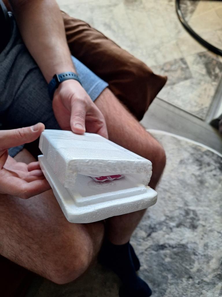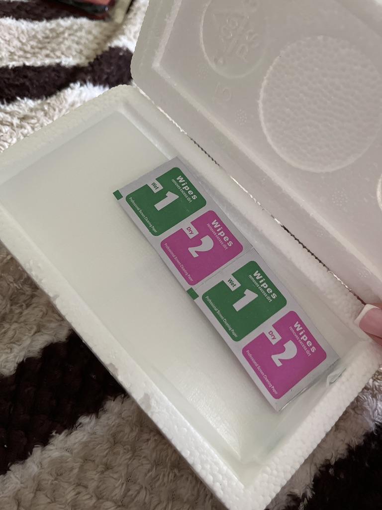 Der leere Karton kam an... das Paket war kaputt und die Schutzflaschen wurden mitgenommen.. Totale Enttäuschung, Joom.