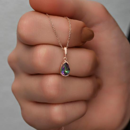 Multicolor Silver Drop Mystic Topas Stone Solitaire Halskette