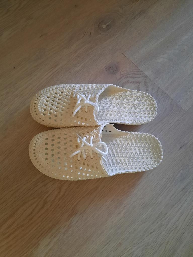 Flip-Flops … Gummi … und sogar Schnürsenkel … Danke. Ich trage 39, habe 41 bestellt und sie sind kaum angezogen... Ich hätte 42 nehmen sollen... Aber diese Größe war nicht verfügbar.
