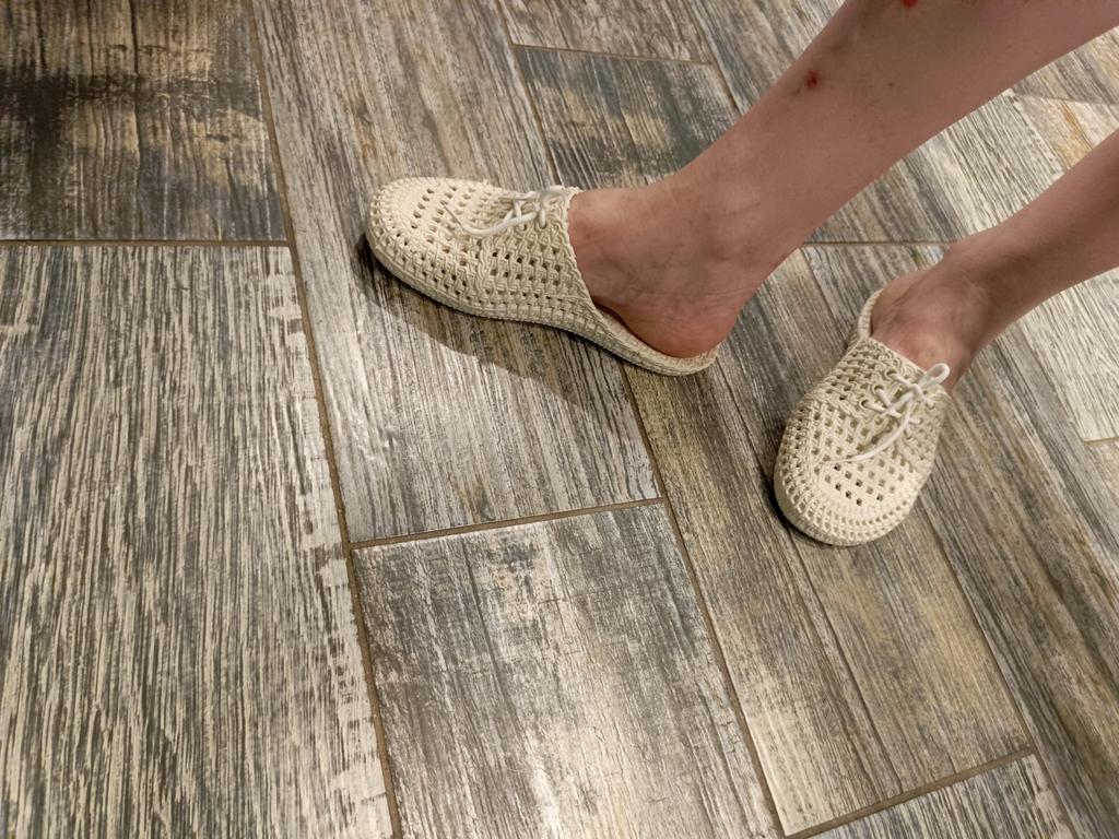 das Produkt ist eine Nummer zu klein, die Farbe ist mit weiß angegeben, sie kamen schmutzig weiß an, sie sehen schön aus und haben keinen Geruch, mein Fuß ist 24,5, die Ferse hängt herunter, obwohl ich eine Nummer größer bestellt habe.