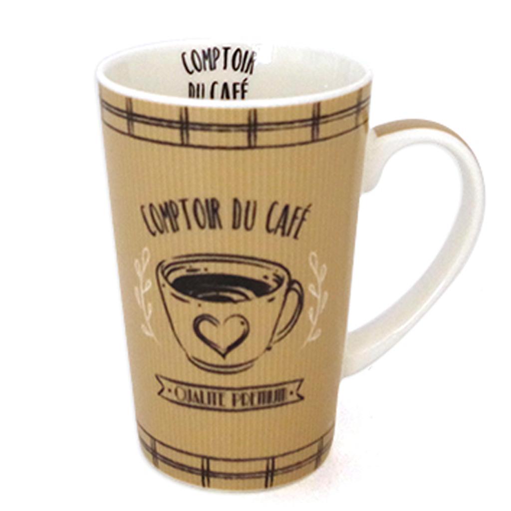 Les Trésors De Lily [A0266] – Großer brauner Porzellanbecher „Comptoir du Café“ – 13x8. 2 cm (40cl)