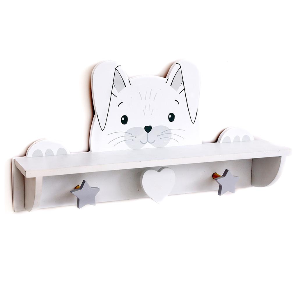 Les Trésors De Lily [A1408] - Wandgarderobe Holz 'Weißes Kaninchen' grau weiß (3 Köpfe) - 40x20x9cm