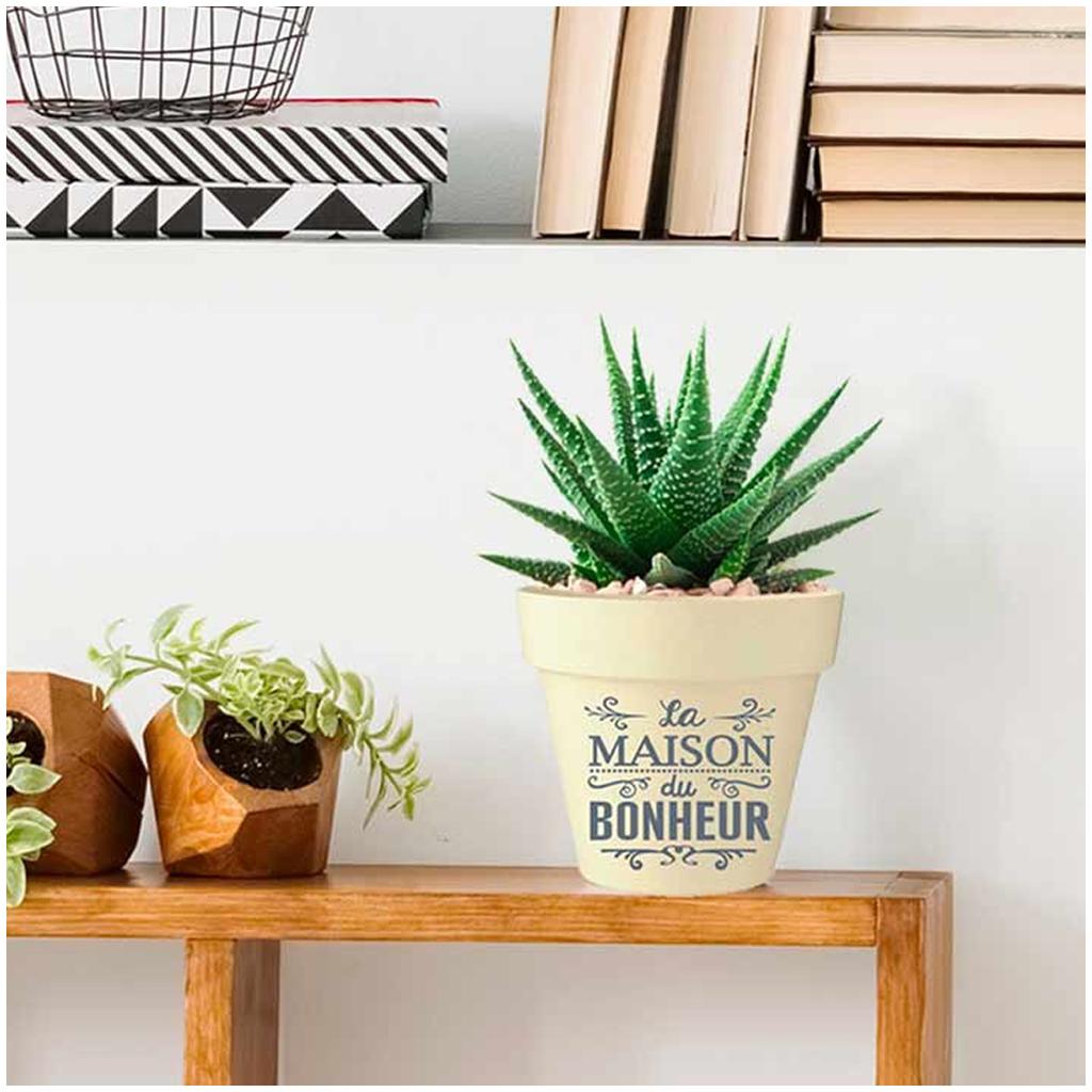 Les Trésors De Lily [Q6398] – Bambus-Pflanzgefäß „Messages“ beigegrau (Das Haus des Glücks) - 13. 5 x 15 cm